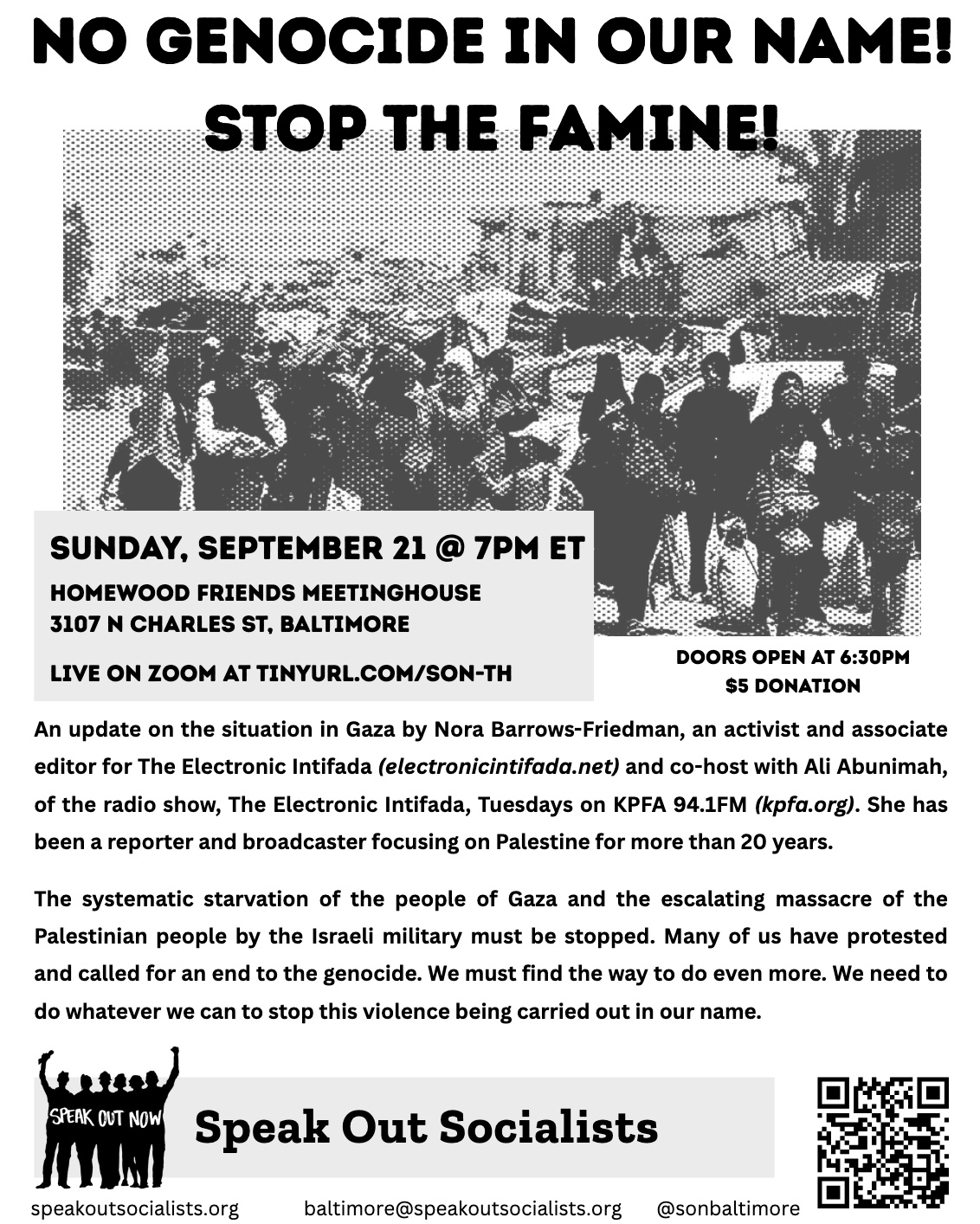 NO GENOCIDE IN OUR NAME! STOP THE FAMINE! An update on Gaza by Nora Barrows-Friedman (Speak Out Socialists Public Meeting)